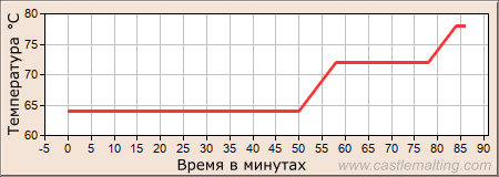 Пауза 50 мин при температуре 64°C.