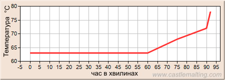 Витримати 2 хвилини при температурі 78°C зробити фінальну стадію затирання солоду (меш-аут)
