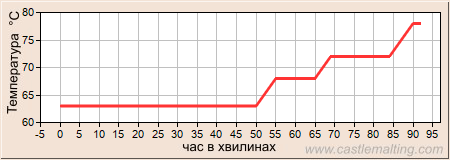 Графік - температура затирання (температура °C , час в хвилинах)