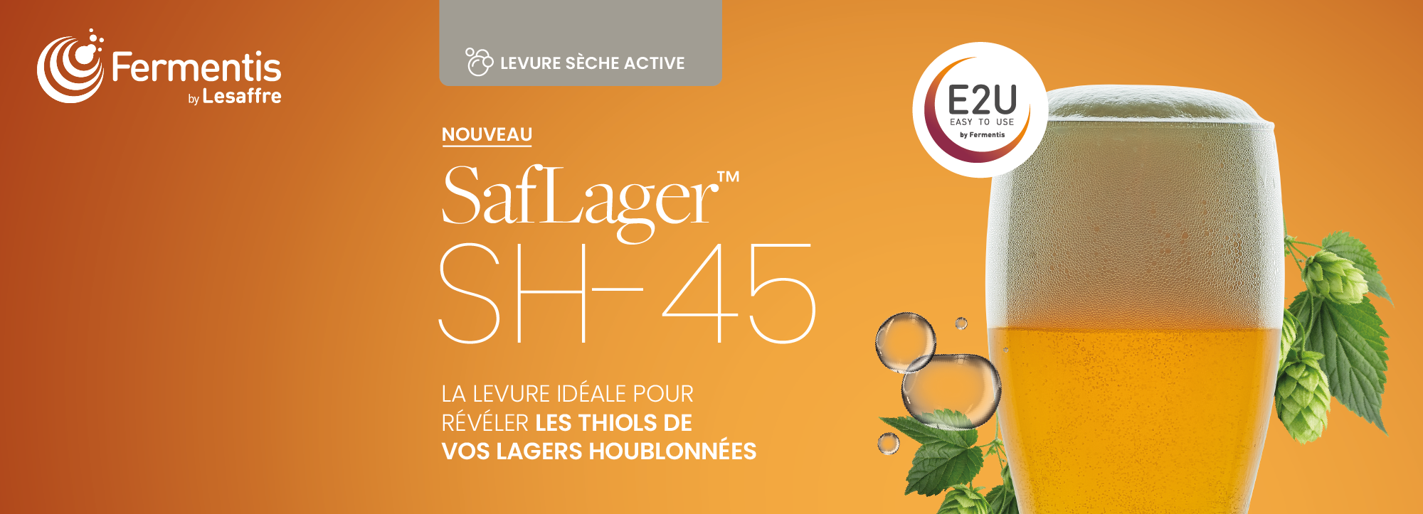 - Les levures innovantes de notre partenaire Fermentis by Lesaffre, dont la toute nouvelle SafLager™ SH-45, idéale pour révéler les thiols de vos lagers houblonnées.